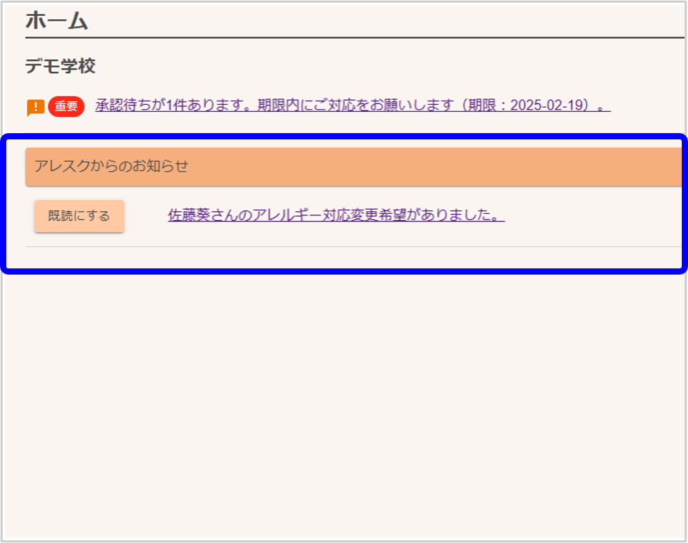 1.ホーム画面のアレスクからのお知らせを確認します。