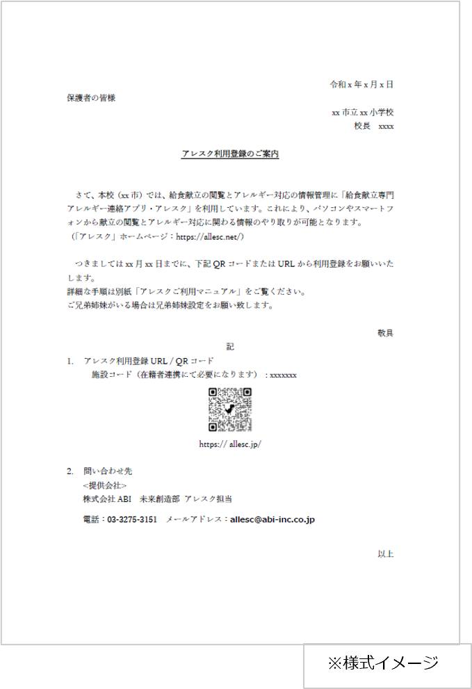 1.在籍者の新規登録が完了したら、保護者へ利用者登録案内を送付します。